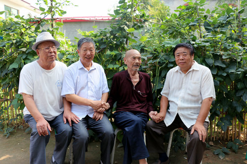 今年是纪念中国人民抗日战争暨世界反法西斯战争胜利70周年,中华志愿者刘瀚锴、董铁棍、刘宝成、单玉志等一行驱车四个多小时前往河北徐水看望贾正喜老英雄,其目的就是我们永远铭记和平年代不要忘记历史,不要忘记抗日英雄。(记者:许顺喜 摄影:杨东亮)