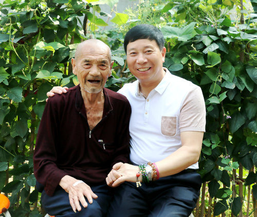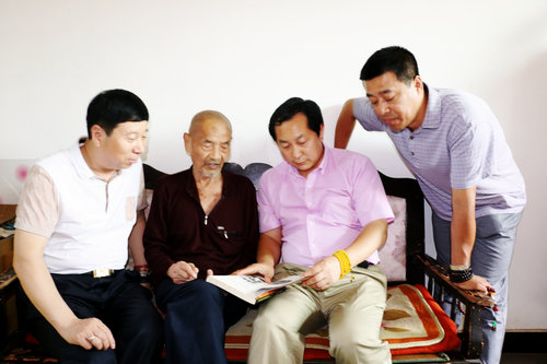 当天下午,当中华志愿者一行在燕南书画院院长张建的带领下,经过几条小巷的打探,最终还是在贾正喜的儿子家里见到了这位年迈古稀的老人。尽管他已经95岁高龄,但和我们交谈起来依然显得那么精神。