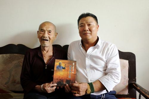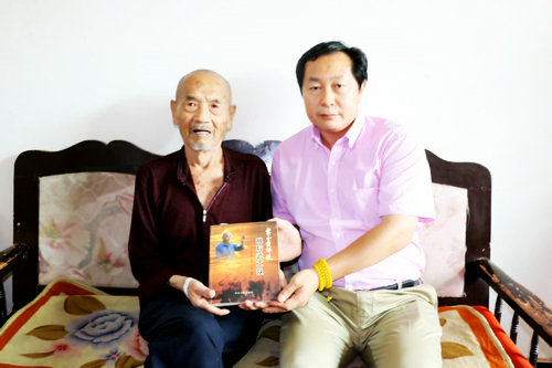 抗日英雄贾正喜向记者许顺喜赠送《贾正喜详说敌后武工队》书籍