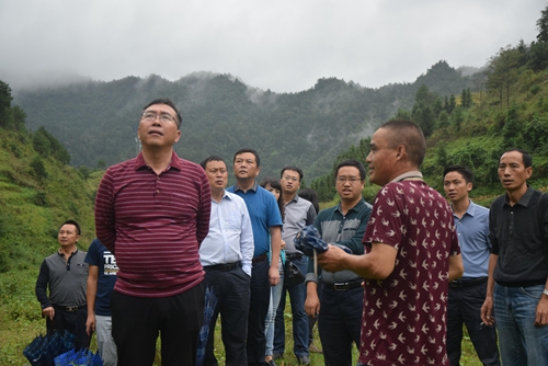 图为调研组实地察看腊冬坪生态移民工程建设情况