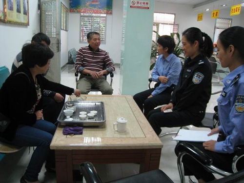 在先声居委会,林双教导员一行与居委会书记李其忠等人座谈,介绍了公安机关正在开展的“秉公执法、人民公安为人民”主题教育活动的相关情况,并就公安出入 境服务民生、服务大众等相关话题进行了深入的交流和沟通,同时认真听取了李其忠等人对公安出入境管理和服务等相关工作的意见和建议。