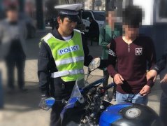 4月9日上午,绥德交警大队岗勤中队民警在千狮桥西路口执勤时,发现一辆无号牌的两轮摩托车正欲通过路口,驾驶员未戴安全头盔。民警立即示意驾驶人靠边停车,接受检查。面对民警的检查,驾驶员崔某(男,22岁)无法出示驾驶证和行驶证。经过调查,崔某未取得摩托车驾驶证,也未给所骑摩托车登记上牌。民警根据《中华人民共和国道路交通安全法》、《陕西省实施<中华人民共和国道路交通安全法>办法》规定,对崔某无证驾驶无牌摩托车的交通违法行为处以罚款并处行政拘留3天的处罚。面对处罚,崔某后悔不已。