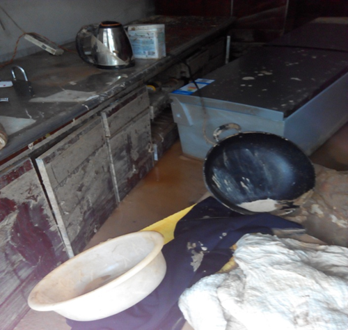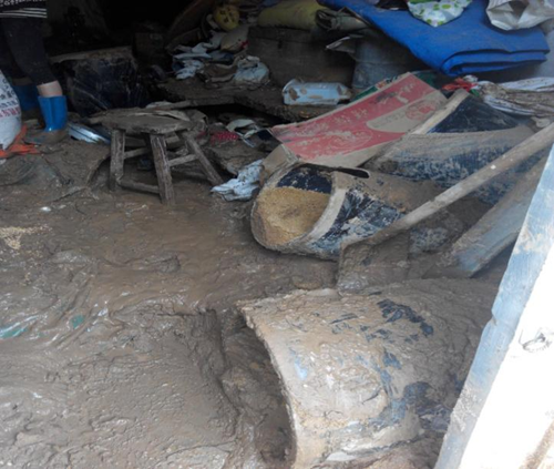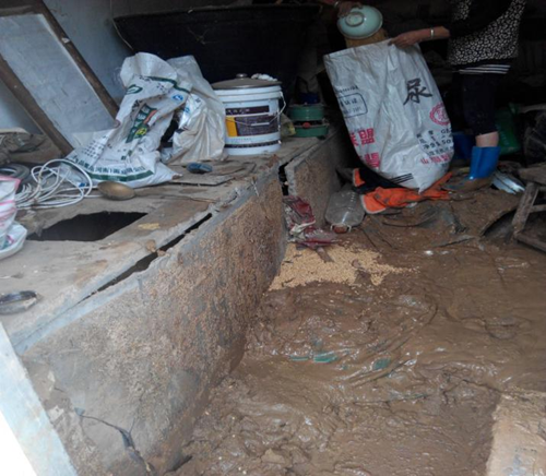 本站讯 李汝法,佳县康家港乡李家圪台村民。在2017年7月26日半夜突降暴雨,持续时间长,雨量达到120.6毫米。由于我家地势较低,后来在修佳吴公路时,路面高出我家院面1米,去年在维修时,又把路面提高1尺左右,在加上政府为了形象工程在公路两边做了砖墙护栏,且道路两边又没有任何防洪措施。所以后村的水无法进入河道,都从公路涌来,公路成了排洪渠道,水高达到1米。经大门口涌进我家院内,使我家院内的水达到1米多,整个家里院内一片汪洋,家里所有家具都被推倒,连炕上都上去10公分左右的水,放粮食的瓮都被推倒,仓子严重变形。三孔窑洞一间正房水浸泡的已不能居住,家里面的所有家具被水浸泡的不能使用,家里柜子底部放八千多元现金被水冲的不知去向。黑豆有5000多斤,部分被水冲走,部分被水浸泡的已发霉。谷子有2000多斤几乎全被水冲在泥里。糜子500多斤也不能食用.使我家现在无地方可住,无粮食可食。造成的经济损失达十几万,给我家生活带来严重的困难。