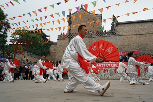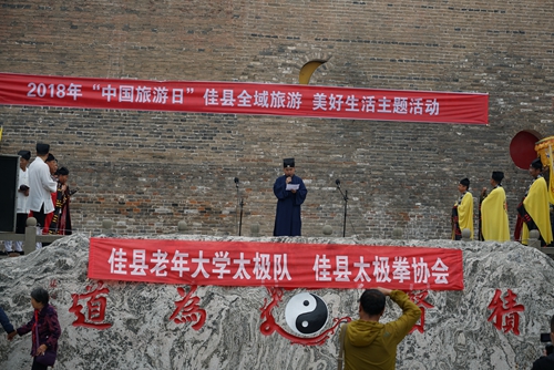 活动现场,前来祈福的群众络绎不绝。白云观用原生态的演绎、最传统的表达向人们展示了道教音乐的精彩,以祈求来年风调雨顺,百姓安康。佳县老年大学带来了精彩的太极拳表演,节目形式多样,内容丰富,有杨式太极拳、气功、太极功夫扇、太极刀等。太极表演动中有静,静中有动,诸多游客驻足观看。