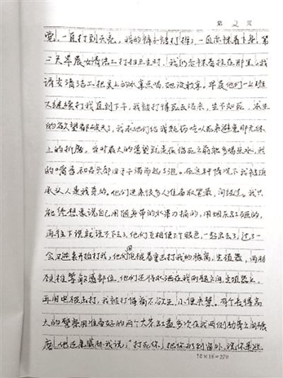“他们给我戴上脚镣,把我带到二楼。一个警察对我说:‘你还等48小时放你哪,别做梦了。’”随后,他双手被手铐吊挂在一根铁管做的横梁上,办案人员对他拳打脚踢。