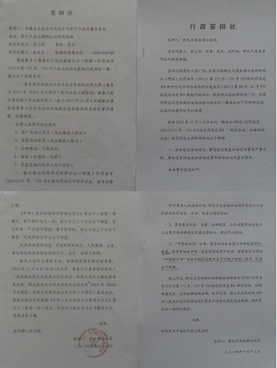 庭审开始后,首先由原告方宣读行政起诉书,之后由被告方宣读答辩状,但是就在此时,一场疑似闹剧的情节出现了:法官和原告同时发现,被告所宣读的答辩状竟 与之前提供给法院和原告的答辩状明显不同,审判长立即提出批评。经查看,法庭和原告发现这份当庭宣读的《行政答辩状》竟然没有加盖公章,甚至连个律师的名 字都没有(注:事后原告又向审判长问询此事,审判长称:他收到的这份答辩状也没有加盖公章)!而此前,新右旗公安局出具的答辩状却加盖了公安局的公章,同 时还有律师事务所和律师的名字!原告当庭指出:这份所谓的答辩状不具有法律效力。