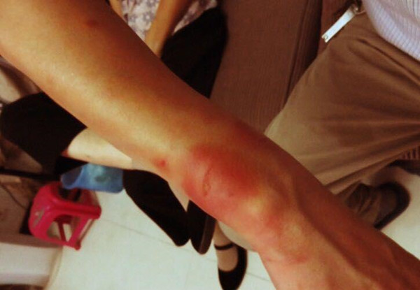 覃正说,他被押往衢州市公安局柯城分局,民警用手铐吊着他的双手连地拖,手铐嵌到肉里,后手肿到平时的两倍大,大小便失禁。被民警严厉“审讯”了一天一夜,身心受到严重创伤。“柯城分局看我伤势严重,害怕闹出人命,于是假称已‘审’完毕,让几个民警将我送往当地医院治疗,顺便将我释放。”覃正对记者说。