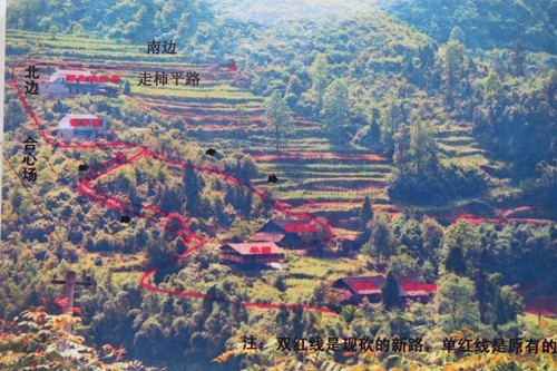 上图:争议地双红线是新路,单红线是原有的老路,上面第二栋是谢成素新修的房