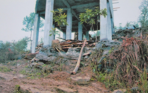 上图:谢成素侵占朱正菊土地新修的房屋右边是一壁天生老石壁,根本就没有路