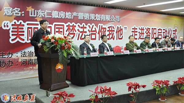 中宣部机关党委委员、老干部书记、法治文化建设促进委员会顾问委员会主席薛启 亮,武警指挥学院武警发展战略教研室教授韩双增将军,中国长城将军书画院院长崔根峰将军,中国房地产战略发展联盟刘家春秘书长,法治报道总编辑贾建平,法 治文化建设促进委员会执行秘书长韩天运,世界家苑杂志《法治文化》专刊常务副总编许顺喜,法治报道法律维权中心执行主任周健,中国乡土艺术协会艺术扶贫专 业委员会常务副主席姚建辰,法治文化建设促进委员会洛阳秘书处马同军秘书长以及山东仁德房地产营销策划有限公司董事长李冠成等领导、嘉宾,共同参加了“美 丽中国梦 法治你我他”大型系列活动走进洛阳的启动仪式。