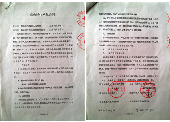 微山县两城镇南薄前村村民委员会(简称“南薄前村”)在与北薄北村、北薄东村签订的林木林地权属争议调解书,按照《荒山绿化承包合同》在领取北京京亨红运商贸有限公司(简称“京亨红运公司”)50%承包款后,出尔反尔!南薄前村将微山县两城镇人民政府(简称“两城镇政府”)和京亨红运公司告上法庭,请求法院判决二被告签订的《荒山绿化承包合同》无效。理由是,承包合同所涉及的南薄前村南眼套独山西侧黄山所有权系该村所有,两城镇政府无权发包。