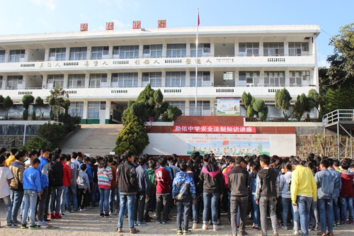 在勐佑中学,司法所工作人员以近期发生的几个涉及中小学生的案件为切入点,通过以案说法、以事讲法的形式,认真讲解了未成年人犯罪的成因及如何预防未成年 人犯罪,再进一步延伸到什么是违法犯罪,违法犯罪对本人、家庭、社会的危害性,教育青少年学生要树立法制思维,正确运用法律手段进行自我保护,同时还向学 生们普及了防火、防盗、预防毒品犯罪和交通事故等法律常识。要求中学生们要认真学习、宣传宪法,做法律的传播者。