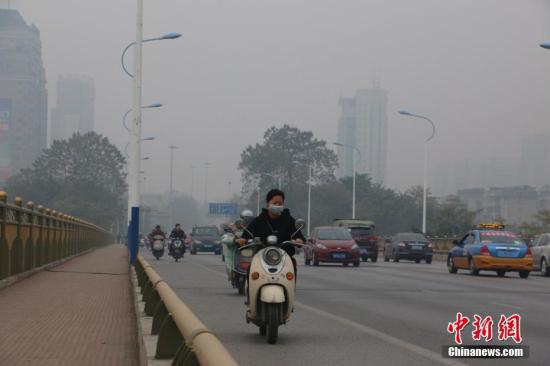 资料图:1月6日,广西柳州市笼罩在一片雾霾中,远处景色一派朦胧。林馨 摄