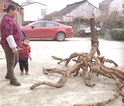 该区林业专家表示,虽然这个葛根不是金坛已发现的最大葛根,但这样的大型葛根在金坛地区还是比较罕见的,“正常山区挖出来的葛藤,一个主根下挖出来的葛根不超过四十到五十斤。”