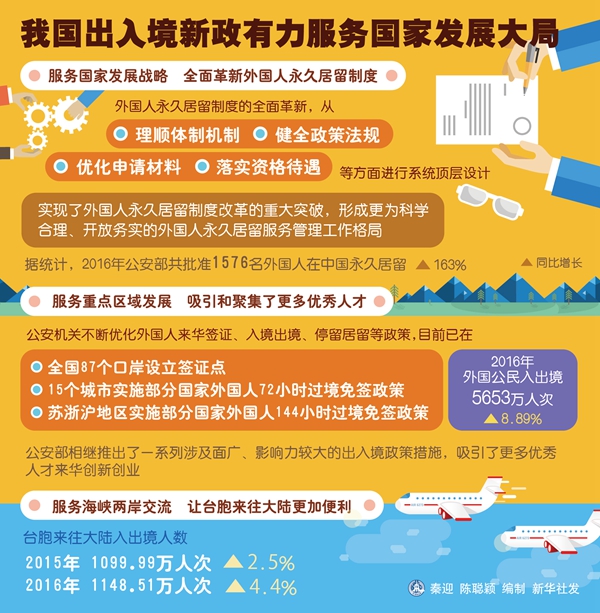 为积极服务重点区域发展,公安部相继推出了一系列涉及面广、影响力较大的出入境政策措施,吸引了更多优秀人才来华创新创业。