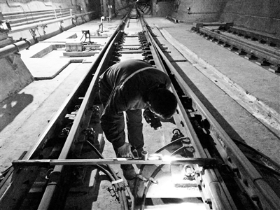 西安地铁3号线工作人员检查电缆