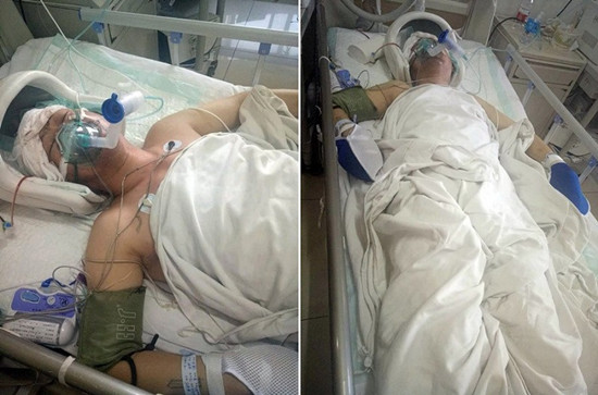 遭殴打致头颅骨粉碎性骨折处于昏迷状态(摄于2016年8月信阳中心医院ICU病房)