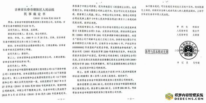 公开资料显示,早在2018年3月15日,吉林省长春市中级人民法院就做出了(2018)吉01民终1301号民事裁定:一、撤销朝阳区法院(2016)吉0104民初3544号民事裁定;二、指令朝阳区法院对本案进行审理。至此,发生在长春市的因法官用空白信造假引发的旷日持久的房地产争夺大战,似乎看到了尽头。但是,朝阳区法院却又玩起了拖延战术和文字游戏,四名法官相互挡剑、背书,找出种种理由拒不纠错!在全国政法队伍整顿的大背景下,关于此案的种种奇葩裁定令人十分震惊。
