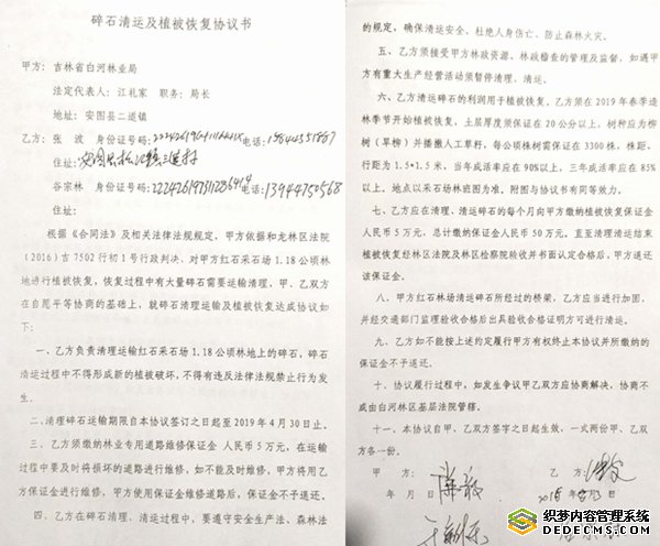 1、白河林业局与张波签订的《协议书》,一审判决认为是依照和龙林区基层法院(2016)吉7502行初1号行政判决的要求,进行林地恢复和碎石清理。一审判决对这一事实的认定是颠倒黑白,该《协议书》的签订的事实是:张波向白河林业局的某副局长有着说不明白的关系,正是这位副局长和于某某以白河林业局的名义与张波签订的此《协议书》。