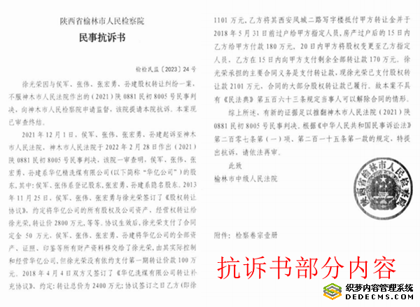 哪里有欺压,哪里就有反抗!徐光荣四处投诉、控告、检举无果,不得已申诉到榆林市人民检察院,案件终于迎来了转机。该院在接到徐光荣的《监督申请书后》,仔细调研了相关案情,提取证据,并于2023年10月30日出具榆检民监(2023)第24号《民事抗诉书》,认为:“2018年5月31日前,徐光荣已经将抵债房屋过户给了张伟、侯军、张宏勇、孙建,本案也不属于《民法典》563条规定的当事人可以解除合同的情形。神木市人民法院2021陕0881民初8005号民事判决书认定事实错误,提出抗诉,依法再审”。本案将于2023年11月21日在神木市法院另行组庭重审,届时孰是孰非,或可水落石出,真正的还受害人一个公道!