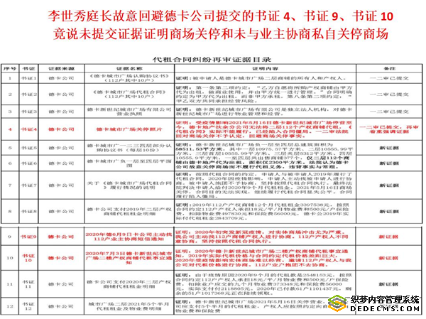 李世秀庭长对最高人民法院关于《依法妥善审理涉新冠疫情民事案件若干问题的指导意见(一)置若罔闻。我公司提交的(书证4(商场关停照片)、书证9:2020年6月9日德卡公司主动找112户业户协商的短信通知,书证10:2020年7月3日德卡新世纪城市广产权商铺代租事宜通知)三份关键证据故意回避,却说德卡公司未提交证据证明德卡城市广场无法继续经营,又未与魏东等101人协商大成一致即擅自将德卡城市广场关闭,可见李世秀庭长故意的违背事实,枉法裁判,并且对德卡公司提出的中止履行代租合同、待商场重新营业后再按照实际价格代租的诉求不予理睬。这样既能平衡双方的利益关系,也能挽救一个民营企业,李世秀庭长对此却只字不提。