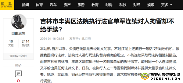 本站讯 自古以来,欠债还钱都是天经地义的事,不过江湖上还流行一句话“好钱要好要”。依据我国现行法律,法院对人进行司法拘留有明确的规定,不能连续采取司法拘留强制措施。而在吉林省吉林市,丰满区法院执行局一名叫做单军的执行法官,却对同一个人连续拘留,又不给出具任何法律文书。日前,被执行人之一苟雪莉找到媒体并提供大量录音和法律文书,她说:就此事,她已经向检察机关提出申请,请求检察机关对单军涉嫌滥用职权问题进行调查。