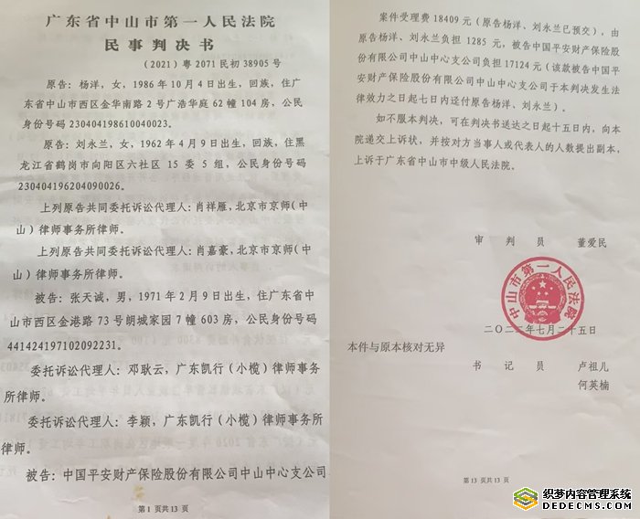 据相关法律文书记载:2020年12月18日,黑龙江人杨庆延在广东中山遭遇车祸,交警认定肇事司机张天诚负全责,杨庆延无责。2021年9月,杨庆延因伤重不治身亡。司法鉴定显示,其冠心病、高血压等基础疾病与死亡存在关联性,但明确外伤为直接死因。
