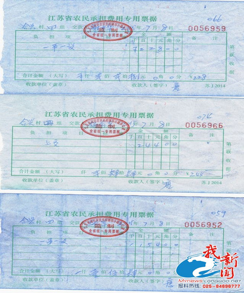 村民说:几年以来,村(居)干部,将虚报土地面积套骗来的“农业补贴资金”打到农民一折通账户,再以发“工资”方式,由村(居)干部收回“农业补贴资 金”,用于抵扣农民上交费用和一事一议等等。村民们多年没有交过现金,抵扣农业补贴款也不需百姓同意,干部在事后给农民发张“上交”、“一事一议”收据, 有的连收据都没有。