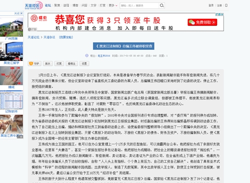 1月23日上午,《黑龙江法制报》会议室张灯结彩,本来是准备举办春节庆功会,表彰新闻敲诈能手和有偿新闻先进,将几十万元现金进行集体分赃,但会议室却迎来了省直机关工委纪委的办案人员,总编辑王伟目瞪口呆地听到了纪委的决定:停止工作,接受组织调查。