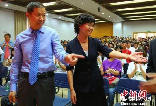 华生台上就“读书与人生”这一主题激情演讲,铁凝台下微笑聆听
