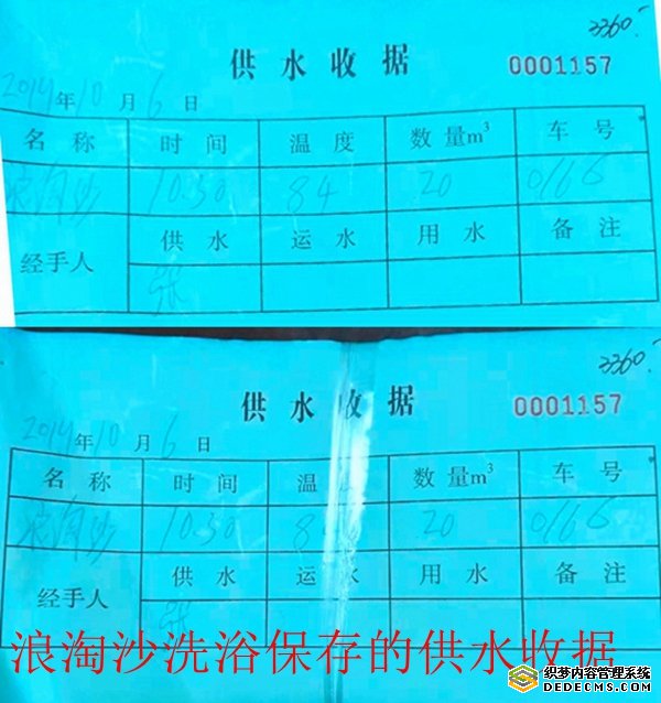 2020年4月初,我接到一个匿名电话,说给我送水的张玉峰,从水厂拉一车15吨的水,送到我店里就增加到20吨,每送一车水就多收我5吨水的钱。我真的不敢相信张玉峰胆子会这么大!但电话里的人说,自从给我浪淘沙送水那天开始,张就给我每车最少缺5吨水,让我自己到化肥厂水站查去。我到了化肥厂水站调取了单据,我看到张玉峰在化肥厂买的水每车是15吨,卖到我家填写的票据就是20吨!