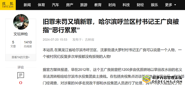 据官方媒体报道,早在2012年,这个王广良就曾把1200多亩优质耕地以旱田改水田的名义非法流转租给哈尔滨市水投集团卖土换钱。在包括央视焦点访谈等媒体多次曝光后,有关部门经调查,对涉案的30多名党政干部和水投集团人员进行了处理,其中10多人被追究了刑事责任,而王广良只是受到党内警告处分,之后又东山再起重新担任村书记。2024年7月1日以后,大罗村村民们再次举报其将5000亩承包地私自改成村集体机动地,将4700多万元补偿款长期扣押。对此,官方回应称,呼兰区纪委已经立案,可是半个月过去了,王广良依然嚣张跋扈如故!人们不禁惊呼,这个村书记到底有什么强大的靠山?难道他不断作恶,就没有人来管了不成?