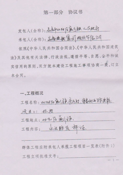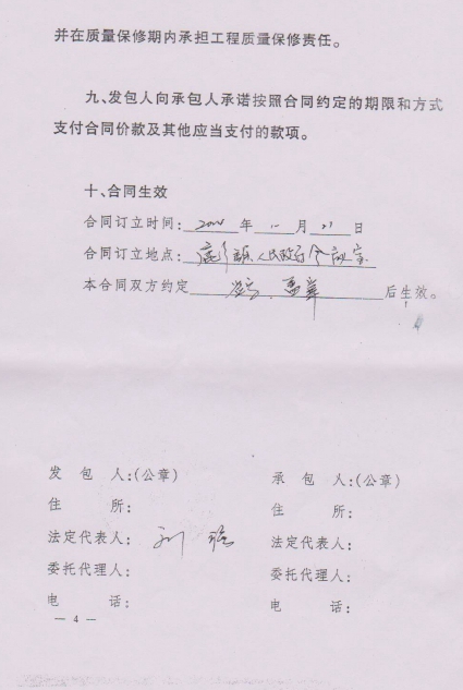 双阳区鹿乡镇与施工方后补的协议