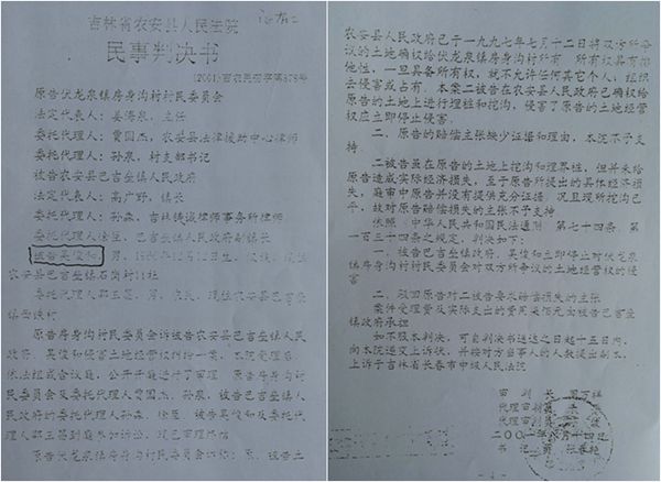 令人感到不可思议的是,在县政府早已经将此块地确权给了巴吉垒镇政府,而且县法院也早就做出过行政判决之后,农安县法院却无视这一切的存在,法官周万祥居然在判决前,于2001年4月19日做出违法的(2001)吉农民初字第878号民事裁定书,先予执行案件标的物,将争议的土地暂由伏龙泉镇房身沟村组织耕种。2001年8月14日,又做出(2001)吉农民初字第878号民事判决书,判令巴吉垒镇政府、吴俊和立即停止对伏龙泉镇房身沟村民委员会对双方所争议的土地经营权的侵害。之后,法院执行庭带人彻底毁掉了800多亩库区地上的青苗……
