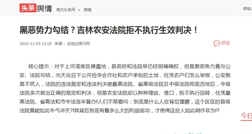 吴俊和与村民们认为:导致执行回转不能的主要原因就是当地的黑恶势力与公安、法院的几个人相互勾结,形成了利益共同体,农安县法院原办案法官总是以各种理由相互推诿拒不执行,公然对抗政府的裁决和上级法院的有效判决和裁定。
