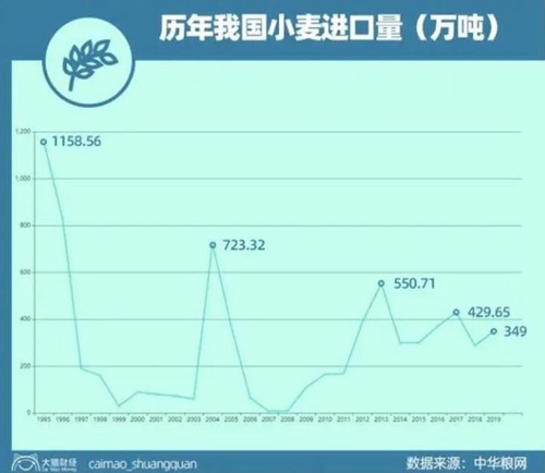 如果看一下细节,你会发现,进口小麦以几个特定品种为主,因为大家爱吃的面包这些东西都需要一种原料——高筋面粉,国内种植的小麦品种还不能满足需求,所以进口量非常大。