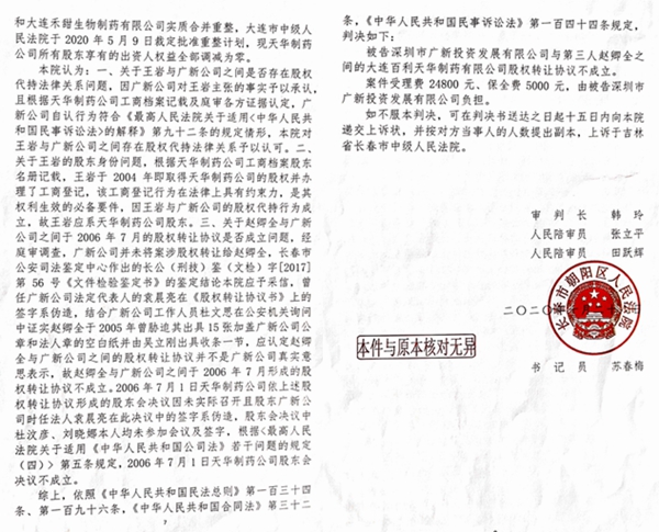 (3)我们多次向大连市中级法院反映陈茂芝债权1.3亿元、广东拓达医药有限公司1亿多元的债务系虚假债权并提供相应的线索,同时提供公安鉴定报告证明赵卿全持有股权是虚假的。然而大连市中级法院对赵卿全虚构的多笔债权的真实性不予审查,这又是为什么?