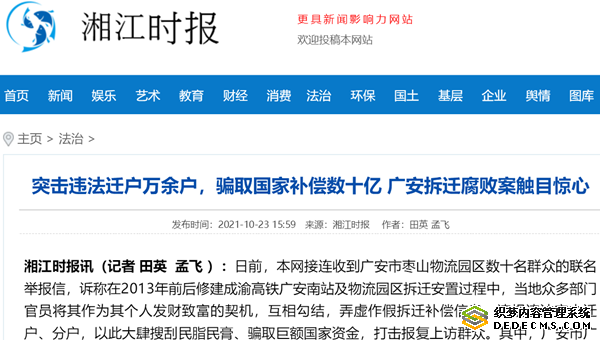 湘江时报讯(记者 田英 孟飞 )日前,本网接连收到广安市枣山物流园区数十名群众的联名举报信,诉称在2013年前后修建成渝高铁广安南站及物流园区拆迁安置过程中,当地众多部门官员将其作为其个人发财致富的契机,互相勾结,弄虚作假拆迁补偿信息,违规违法突击迁户、分户,以此大肆搜刮民脂民膏、骗取巨额国家资金,打击报复上访群众。其中,广安市广安区枣山镇(现为广安市枣山物流园区枣山街道办事处)涉及突击违法迁户逾万户,骗取国家补偿资金数十亿元……为此,记者进行了为期一个月的深入调查和走访。