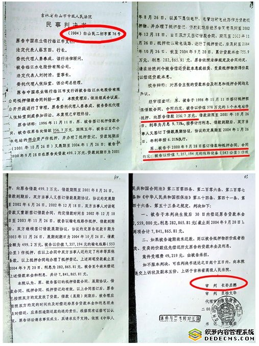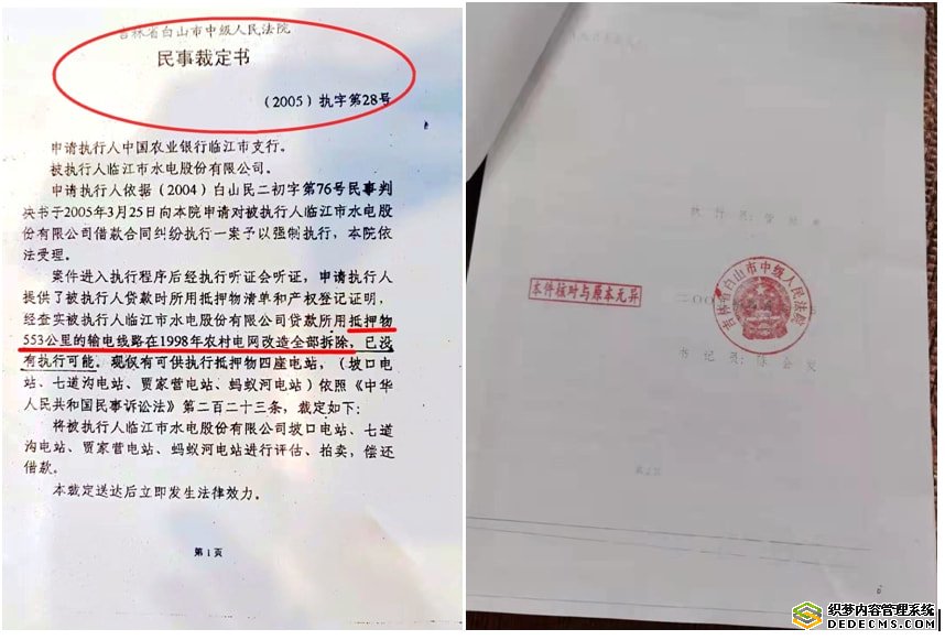 (2004)白山民二初字第76号《民事判决书》称:“原告中国农业银行临江市支行诉被告临江水电股份有限公司抵押借款合同纠纷一案,经审理查明: