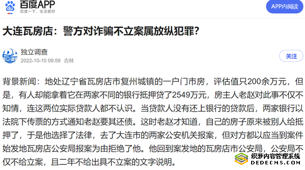 相关新闻:大连瓦房店:房产“被贷款”2549万报案咋没人管?
