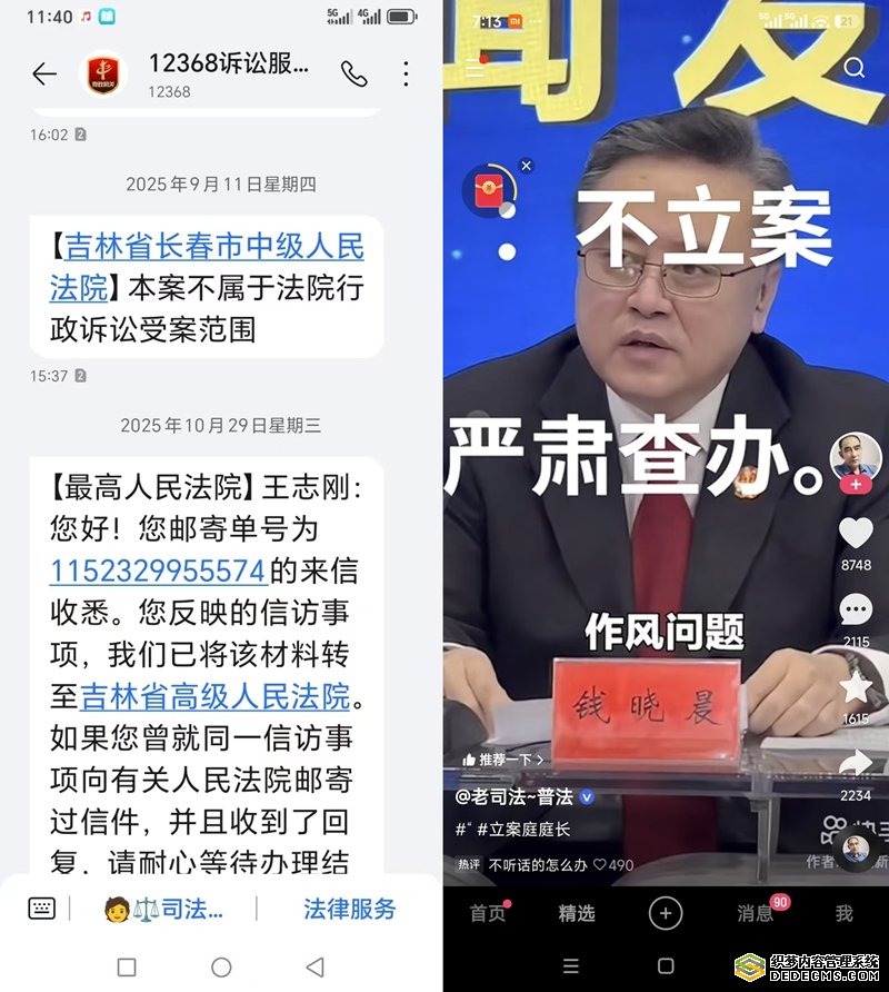 在多方维权无果后,王志刚依据《中华人民共和国行政诉讼法》相关规定,向法院提起行政诉讼。其诉讼请求明确,要求依法判令长春市政府履行法定职责,责成德惠市政府履行支付被征收土地使用权补偿款的法定义务。但是,在等待了几个月之后,王志刚等来的并不是好消息。2025年9月11日,长春中院居然用短信回复他:“本案不属于法院行政诉讼受案范围”!连个书面答复都没有给他。这,令他十分费解和气愤。