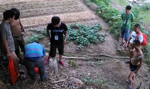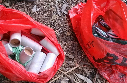 发现小江口下青杠炸鱼违法行为现场