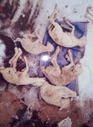 站在月亮泡水库周边,放眼望去,能看到很多土堆,有的还若隐若现的。为了看的清楚,我们只好中途改乘摩托车,向草原深处进发。五月中旬的新合村草原,青草刚刚长出,野花遍地开放,一片生机勃勃的景象,骑在摩托车上向前奔驰,美丽的草原在我们脚下旋转着、飞驰着奔向远方……但是,一处处堆积如山的黑土堆,却令人感到十分扫兴,这些黑土堆有的大,有的小,有的列成一排,有的简直就是一座大山......