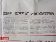 5月24日,山西《阳泉日报•新盂县》在报眼位置刊登的一则题为《雷健坤“四不两直”突查环保问题整改》的消息称,“为认真落实生态环境部约谈我市提出的大气环境污染问题整改要求,5月20日,市长雷健坤采取“四不两直”方式,突查我市部分企业整改情况。”