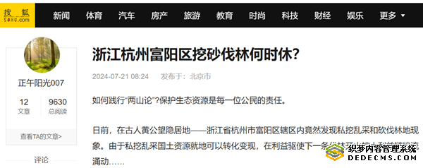 日前,在古人黄公望隐居地——浙江省杭州市富阳区辖区内竟然发现私挖乱采和砍伐林地现象。由于私挖乱采国土资源就地可以转化变现,在利益驱使下一条伐林开山挖土利益链暗流涌动……