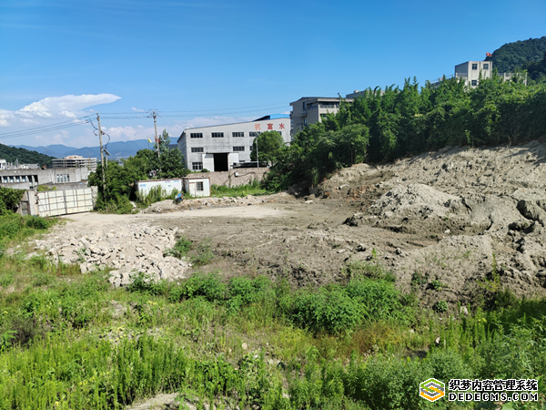 图为:杭州富春江水电设备有限公司对过围墙里尚未运走的建筑材料