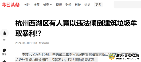 本站讯 2024年5月,中央第二生态环境保护督察组督察浙江省发现,杭州市建筑垃圾处置能力建设滞后,监管不力,违法倾倒问题多发。