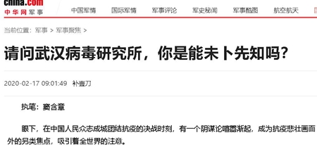 一些别有用心的外媒称,影响世界的新冠肺炎病毒疫情,是中国研究的生物武器病毒泄露导致的,而病毒的源头是武汉病毒研究所。