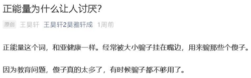 正能量这个词,和亚健康一样。经常被大小骗子挂在嘴边,用来骗那些个傻子。