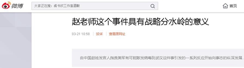 由中国赵姓发言人指责美军有可能散发病毒到武汉这件事引发的一系列反应开始向事态的纵深发展了。赵姓发言人可能做梦都没想到,他开了人类公共卫生事件上的一个历史先河,把瘟疫上升到了国家之间严重的政治冲突和较量的层面上。